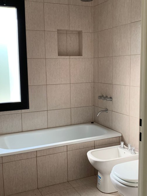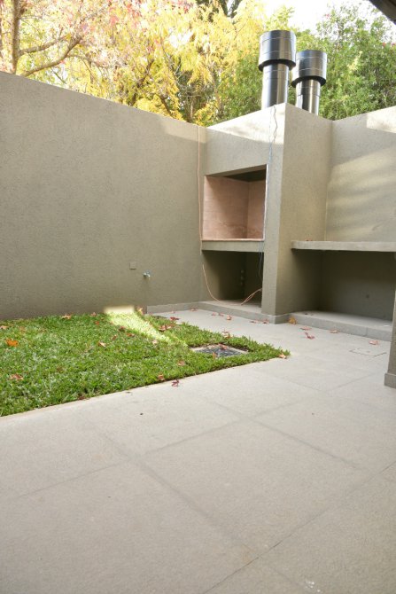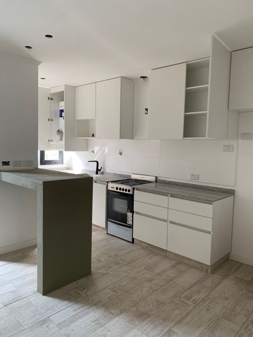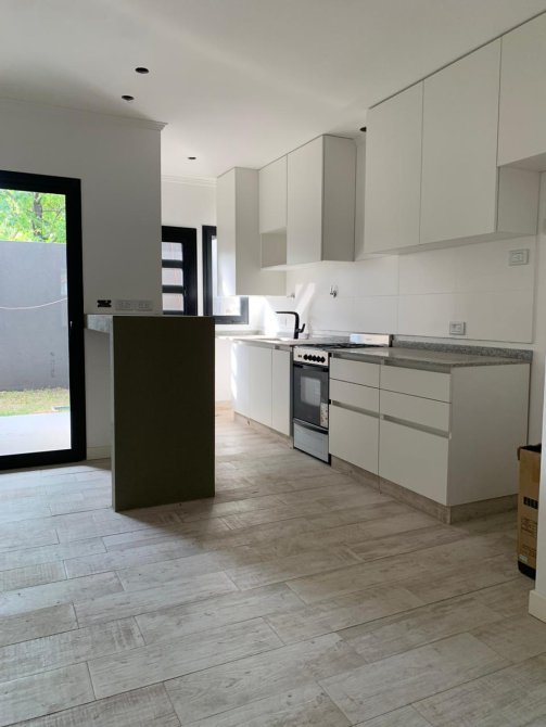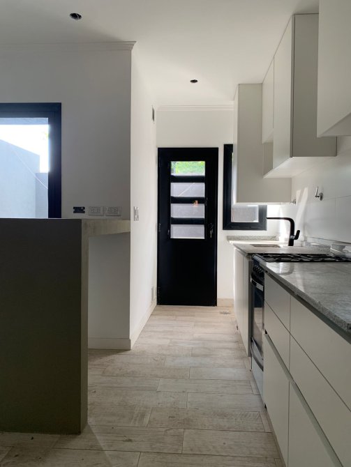 Planta baja living comedor, cocina integrada con una barra, lavadero, toilette y patio con parrilla.