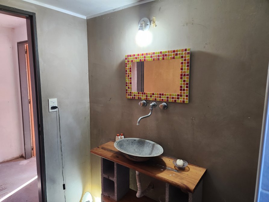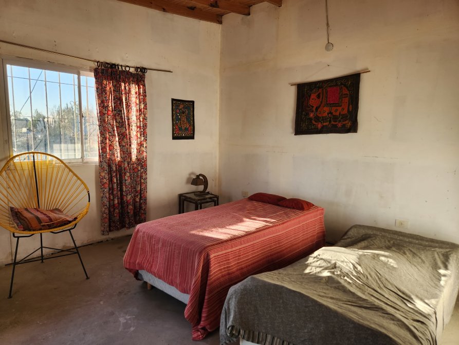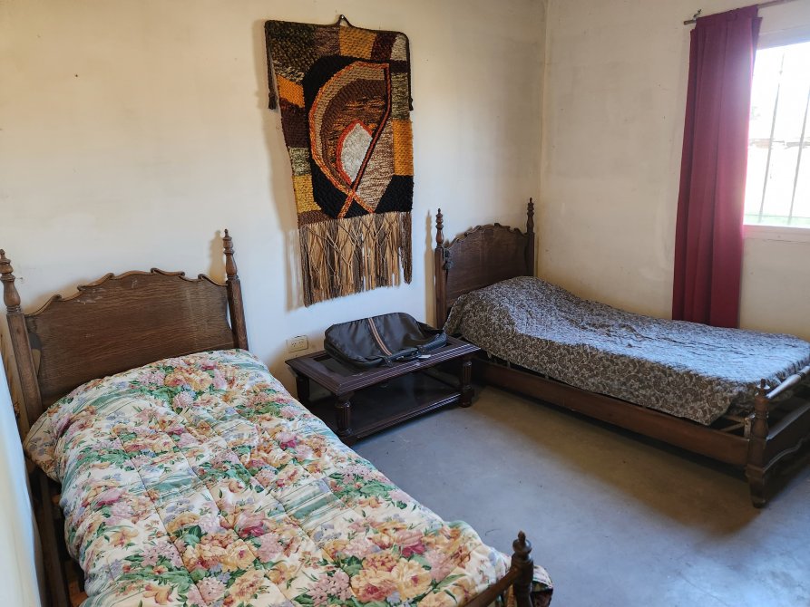 La casa consta de living comedor con cocina integrada, dos dormitorios amplios y un baño.